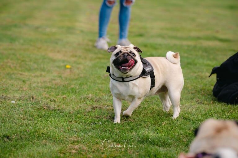 Our gorgeous girl Molly has had 6 beautiful chunky babies, 3 boys and 3 girls. Mum is a beautiful example of the breed and is Fawn with black mask, Dad Alfie is a very handsome pure white pug. No expense has been spared in their ongoing rearing. They all have beautiful markings and fantastic natures and have been brought up in a family home environment and are used to the hustle and bustle and noises of a busy home. They are very playful and cheeky and are enjoying being handled daily.Puppies will be vaccinated, microchipped, wormed and deflead along with 3 vet checks before going to their new homes.