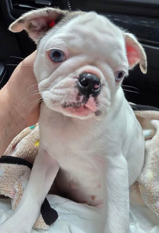 White Blue eyed Girl Pug Puppy for Rehoming